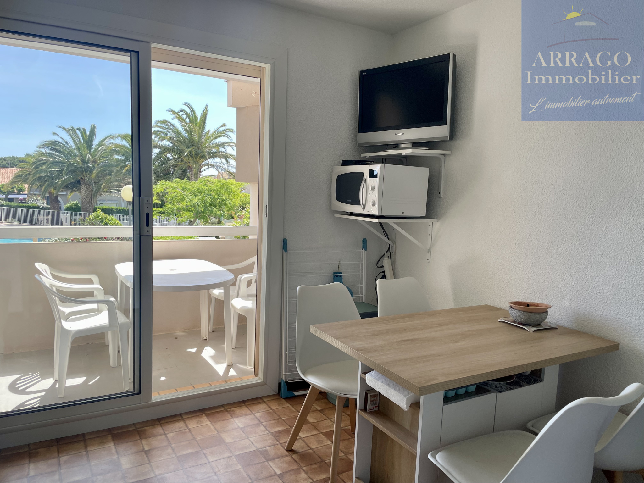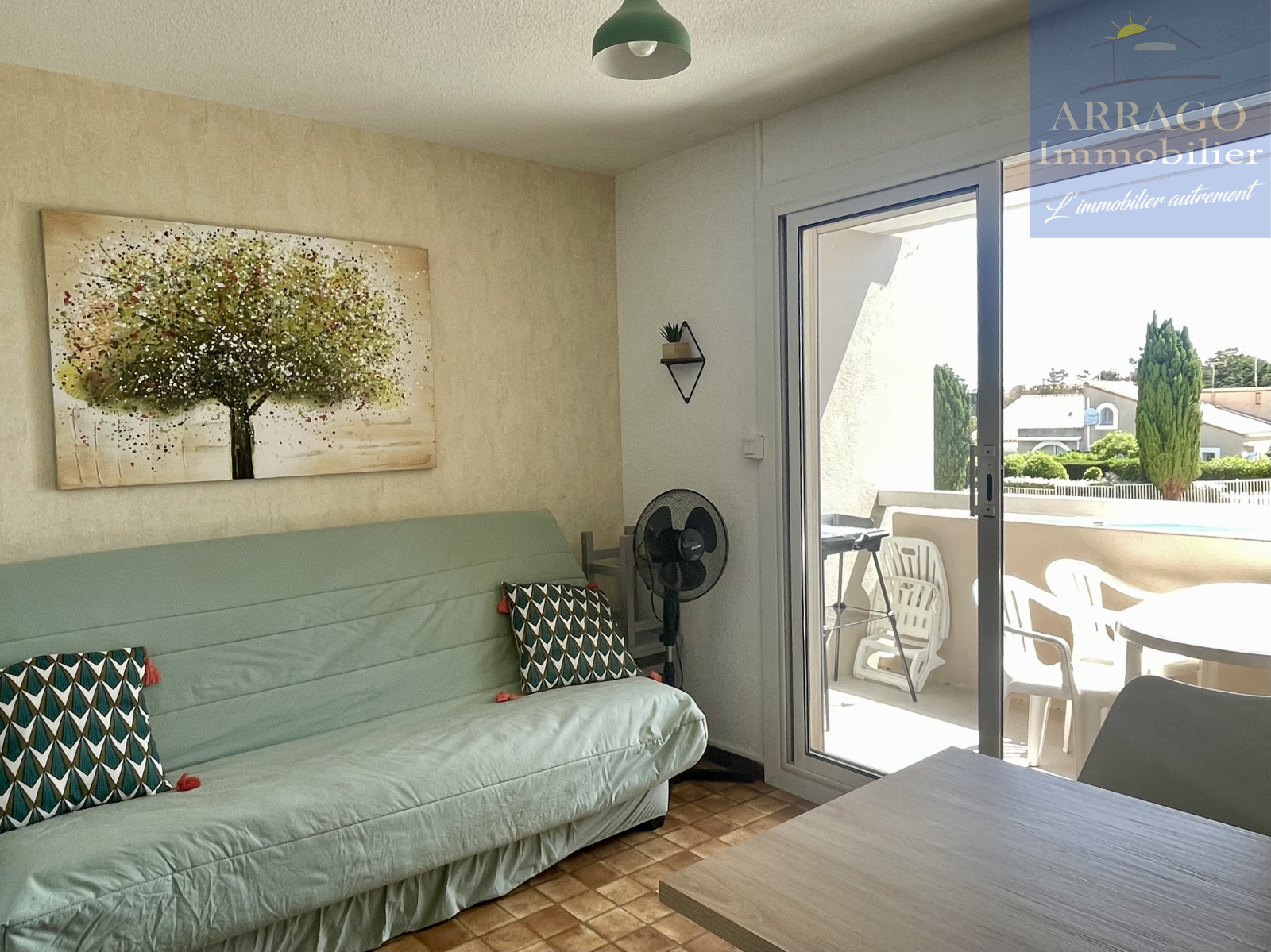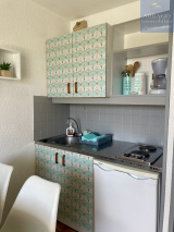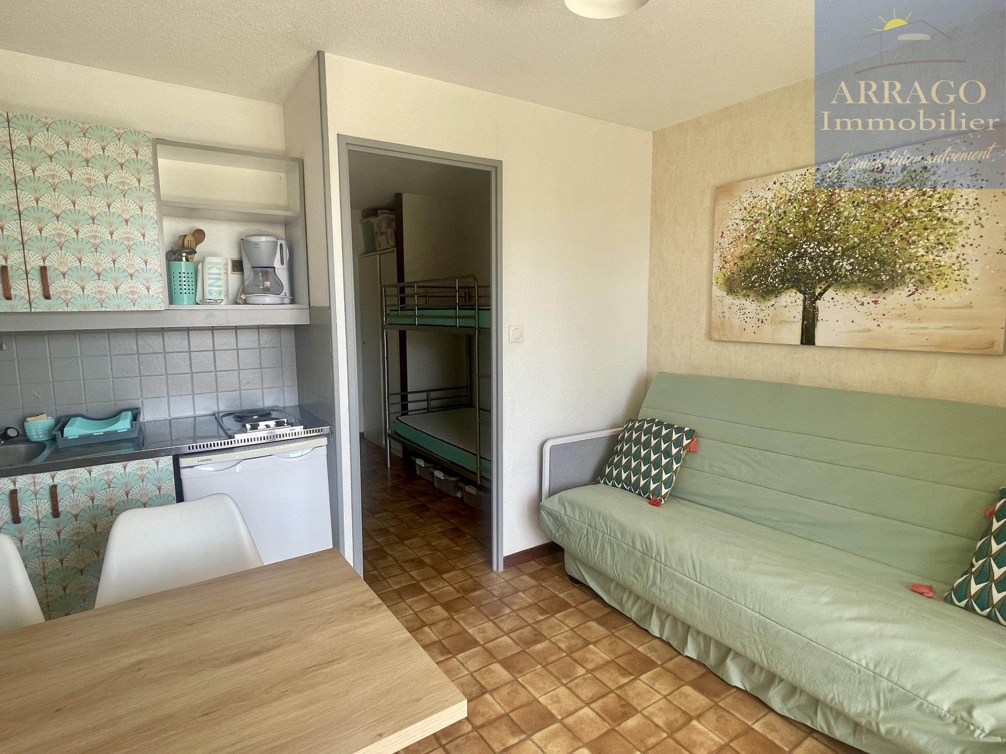 VALRAS PLAGE, secteur STADE, au sein de la résidence "Lou Portalou ", appartement "L'arbre de vie" studio cabine de 19 m² au 1er étage sans ascenseur. Séjour/kitchenette équipée, 1 cabine, salle de bain avec wc. Terrasse privative exposée Sud.
