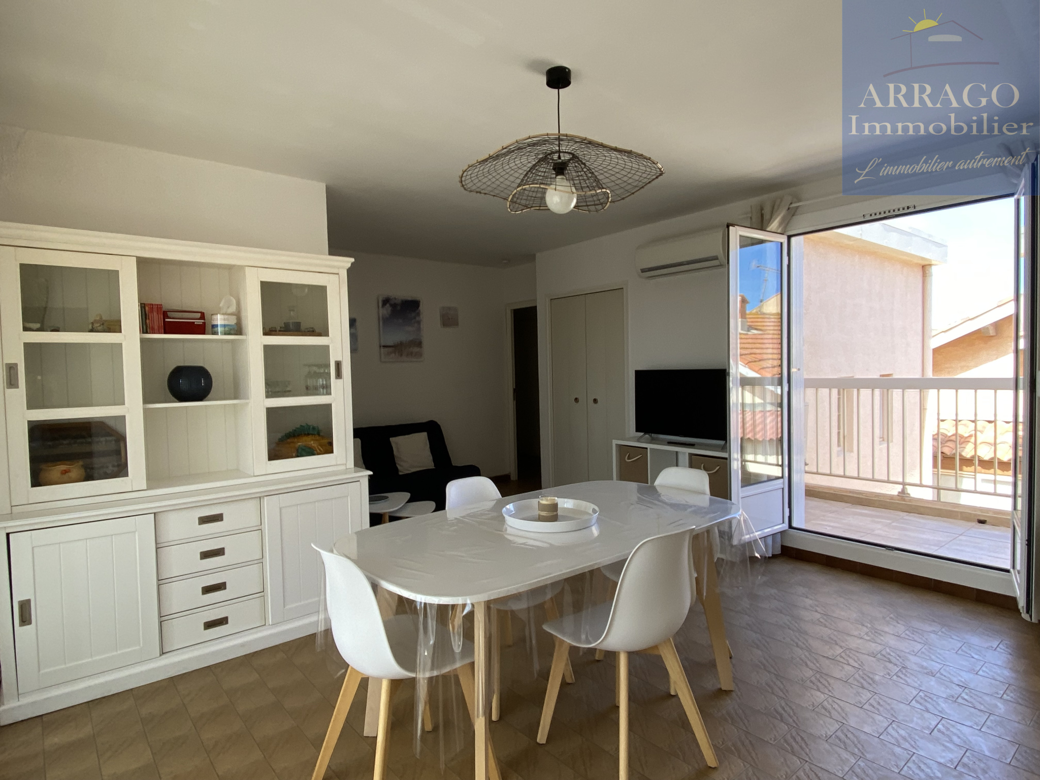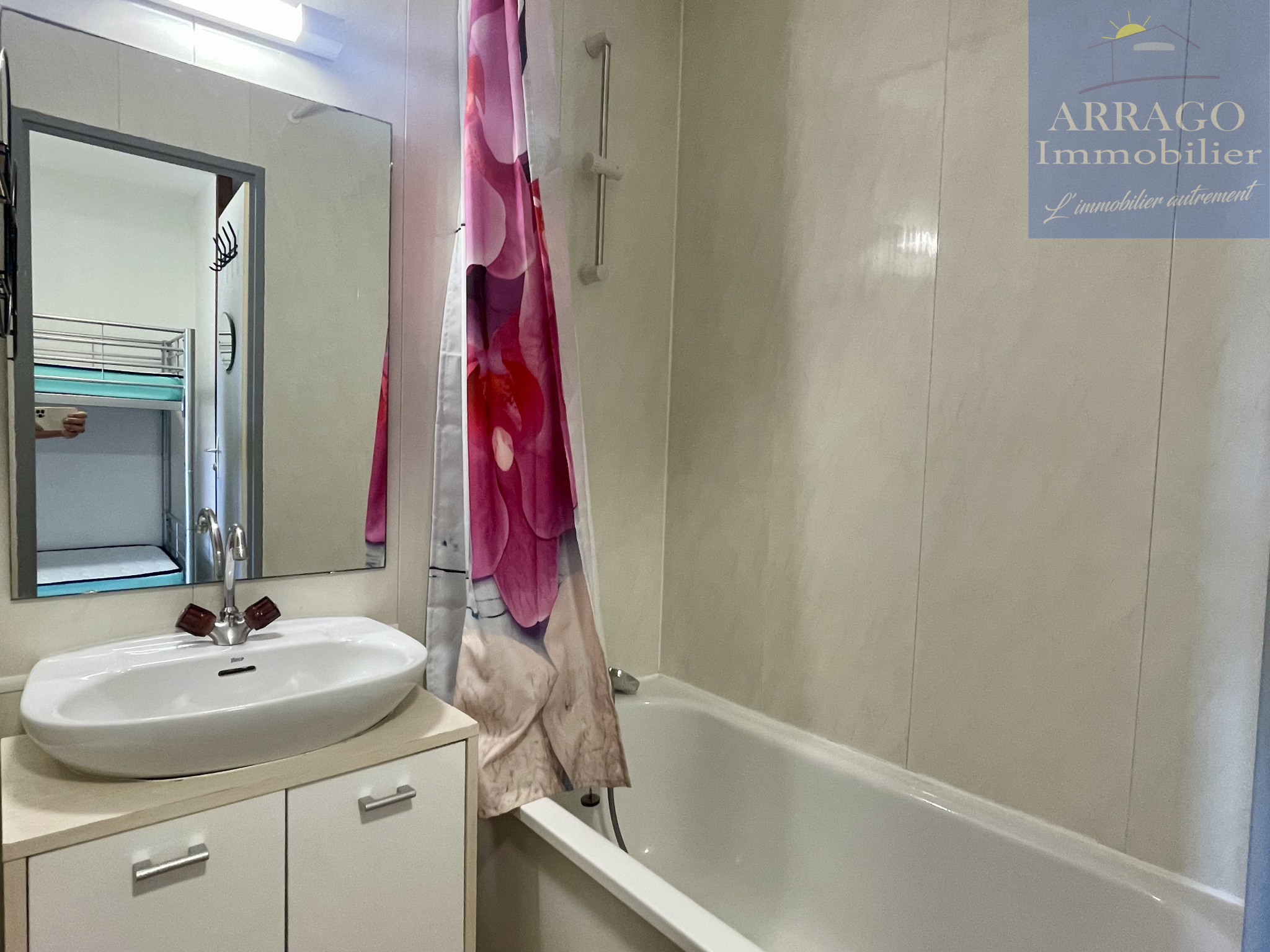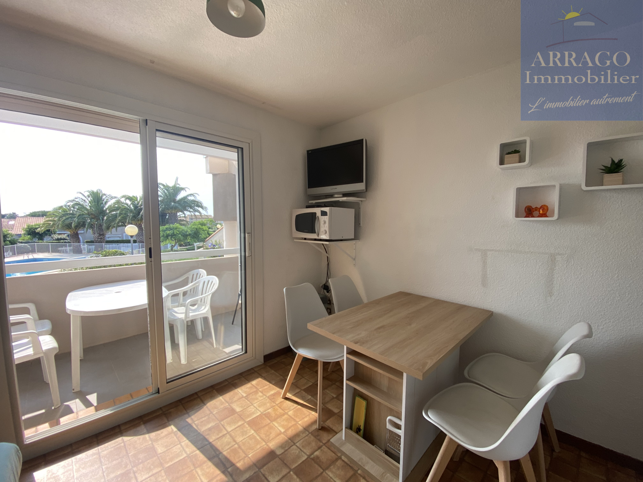 VALRAS PLAGE, secteur STADE, au sein de la résidence "Lou Portalou ", appartement "L'arbre de vie" studio cabine de 19 m² au 1er étage sans ascenseur. Séjour/kitchenette équipée, 1 cabine, salle de bain avec wc. Terrasse privative exposée Sud.