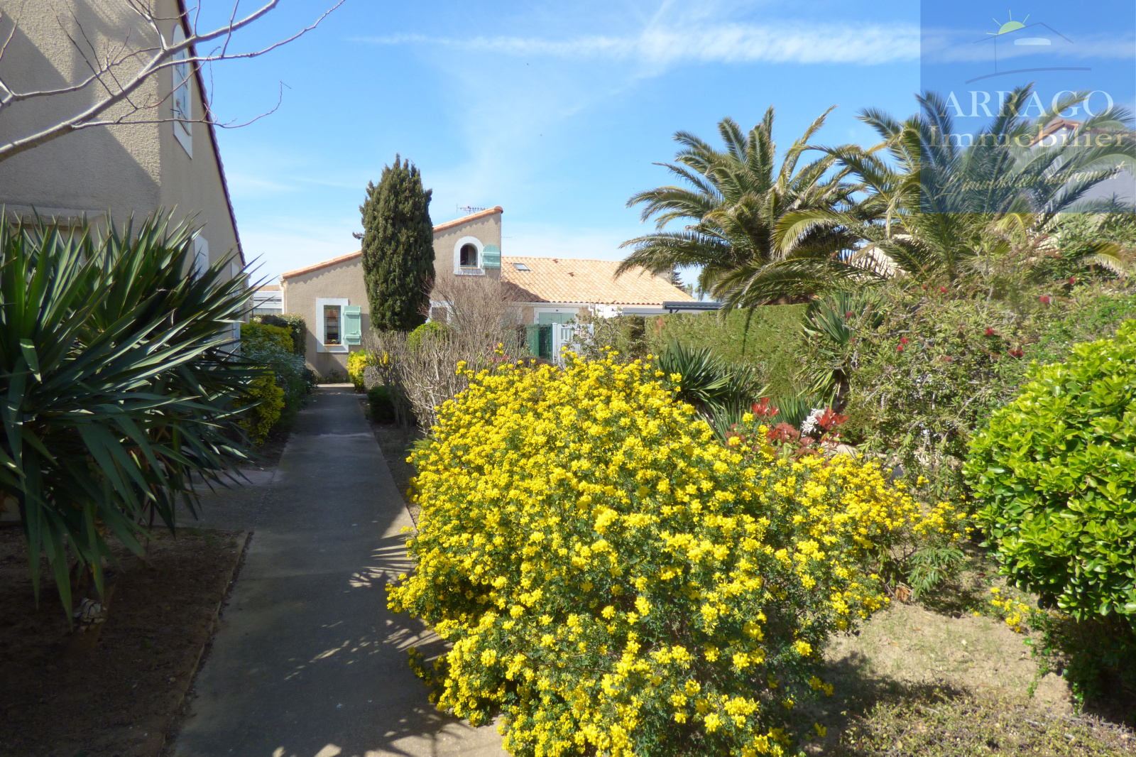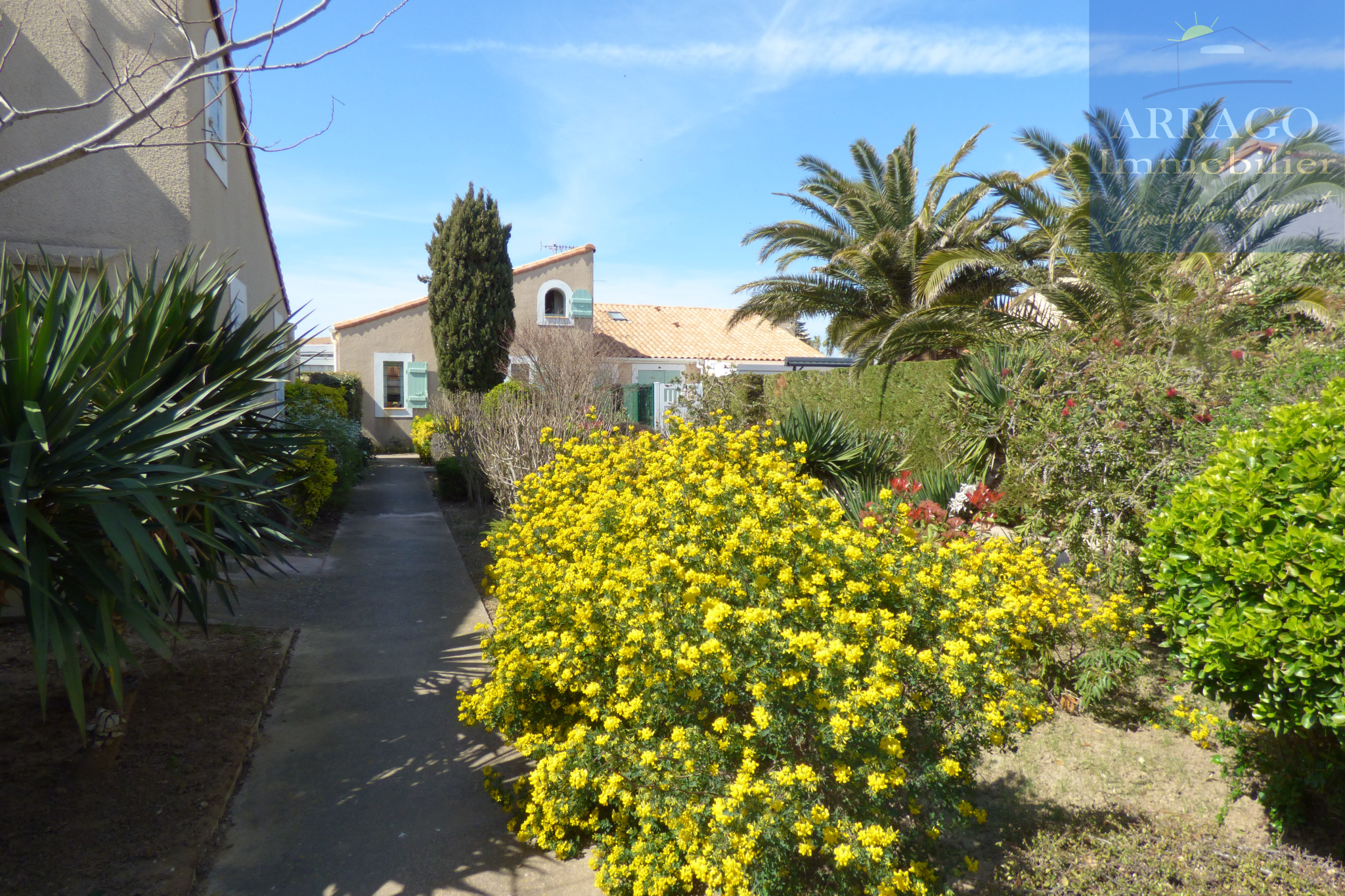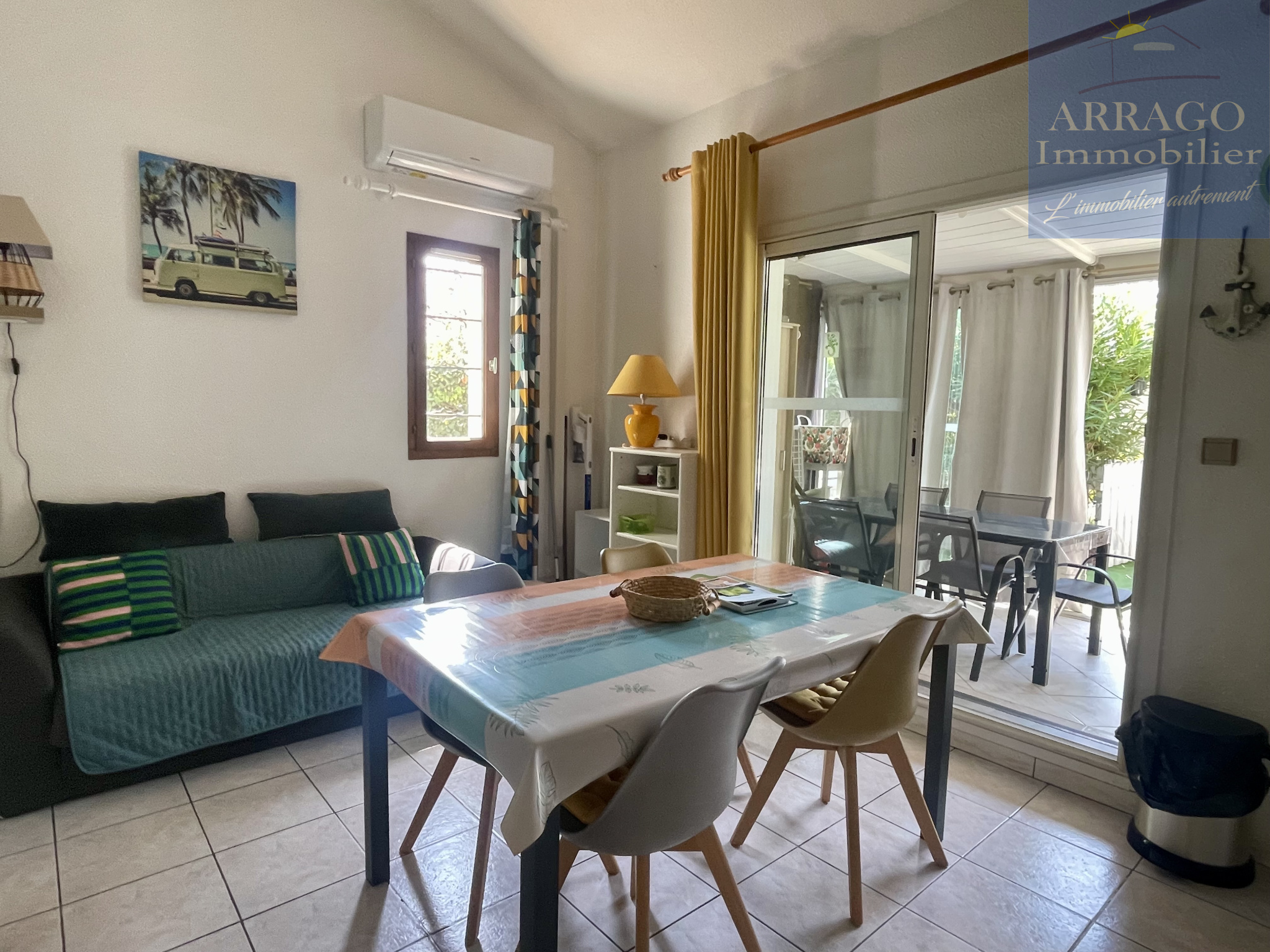 VALRAS PLAGE, secteur STADE, au sein de la résidence "Lou Portalou" pavillon d'angle "Au Coquillage Vert" de 43m². Séjour/cuisine équipée, 2 chambres dont une au RDC, une mezzanine, une salle d'eau avec wc et une véranda. Jardin privatif.