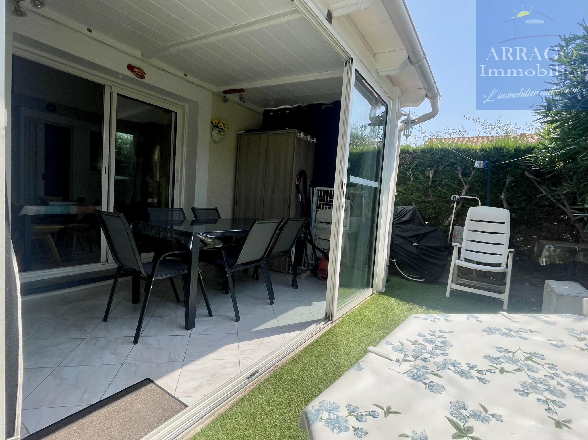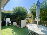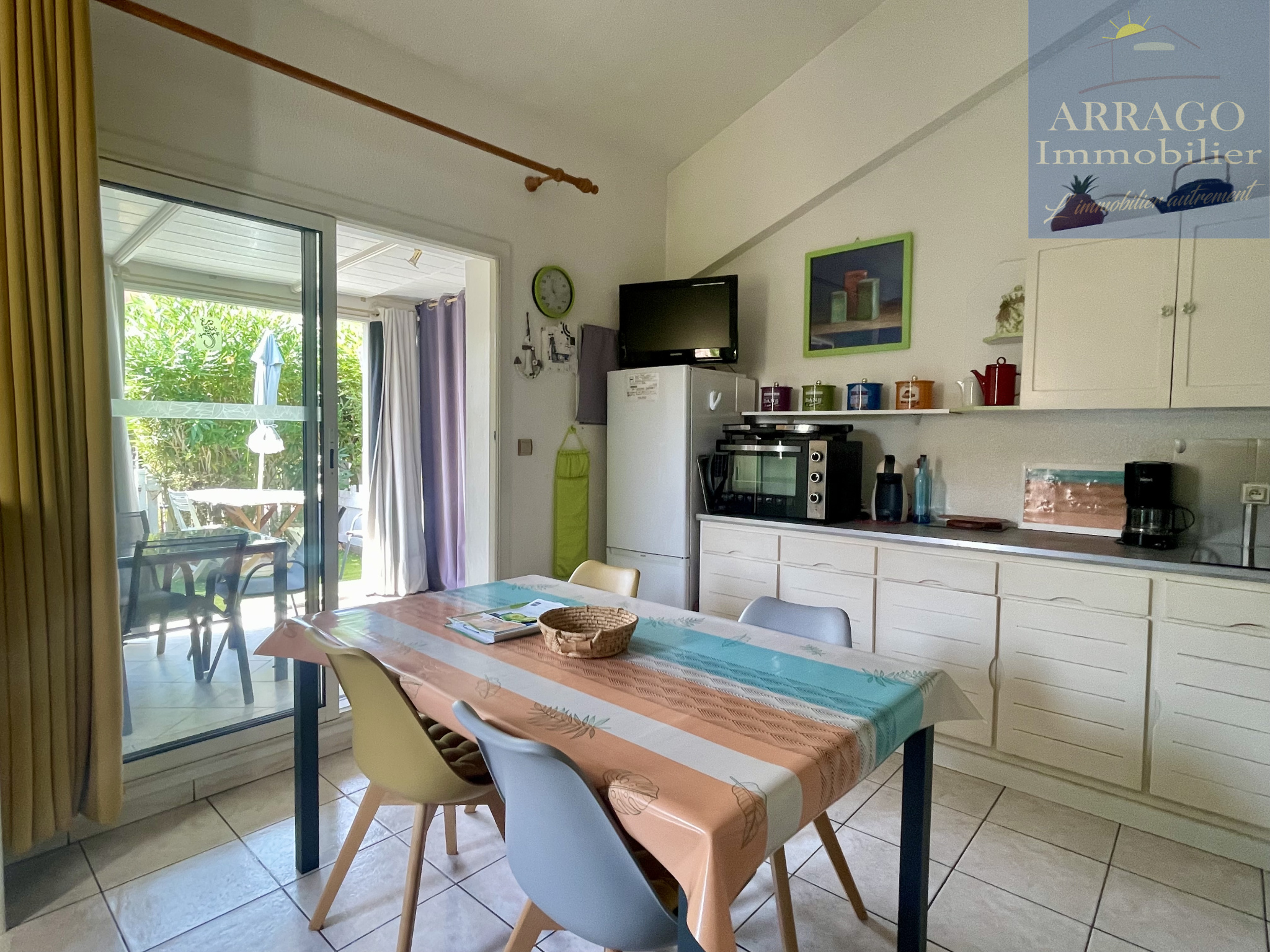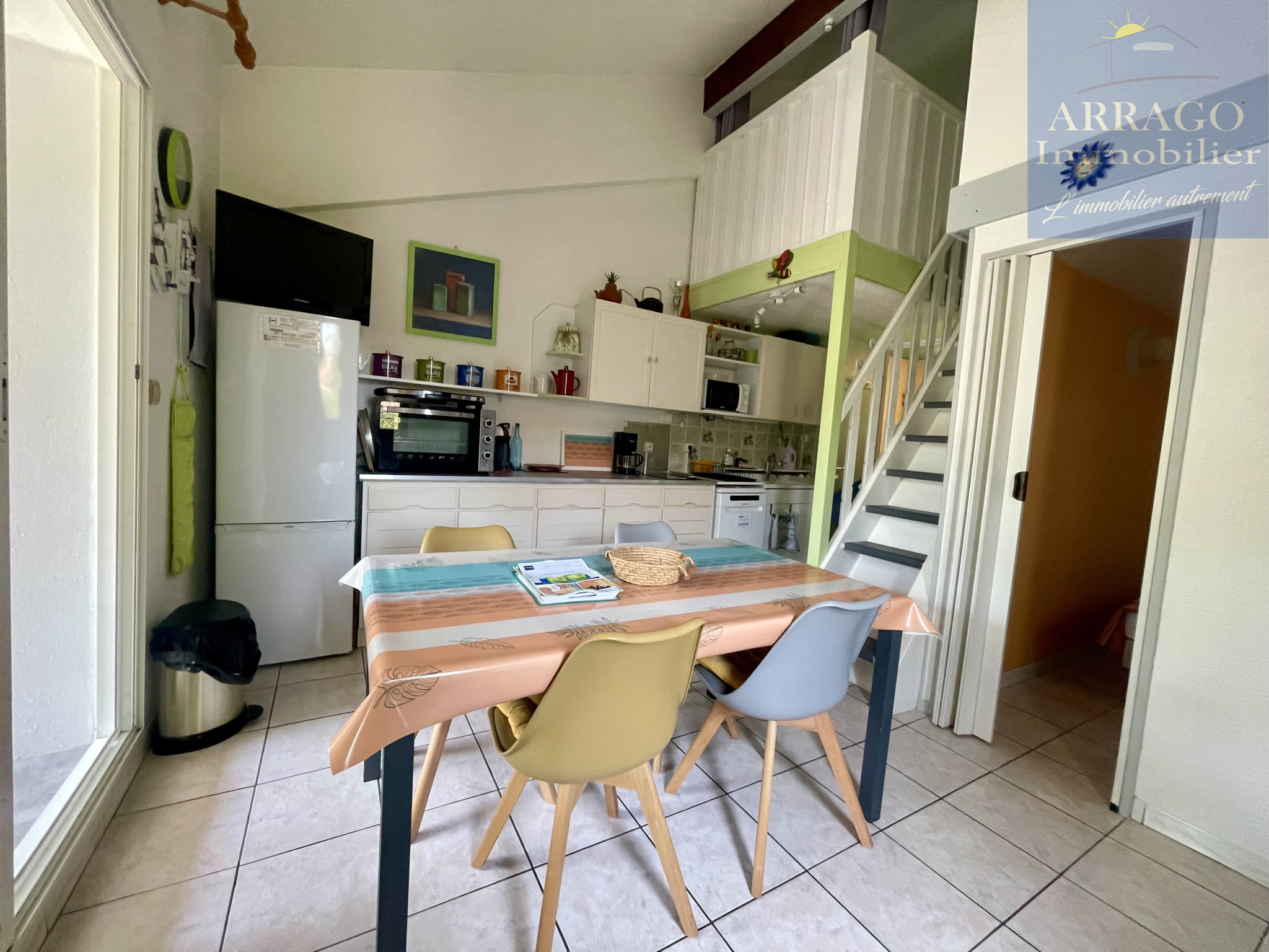 VALRAS PLAGE, secteur STADE, au sein de la résidence "Lou Portalou" pavillon d'angle "Au Coquillage Vert" de 43m². Séjour/cuisine équipée, 2 chambres dont une au RDC, une mezzanine, une salle d'eau avec wc et une véranda. Jardin privatif.