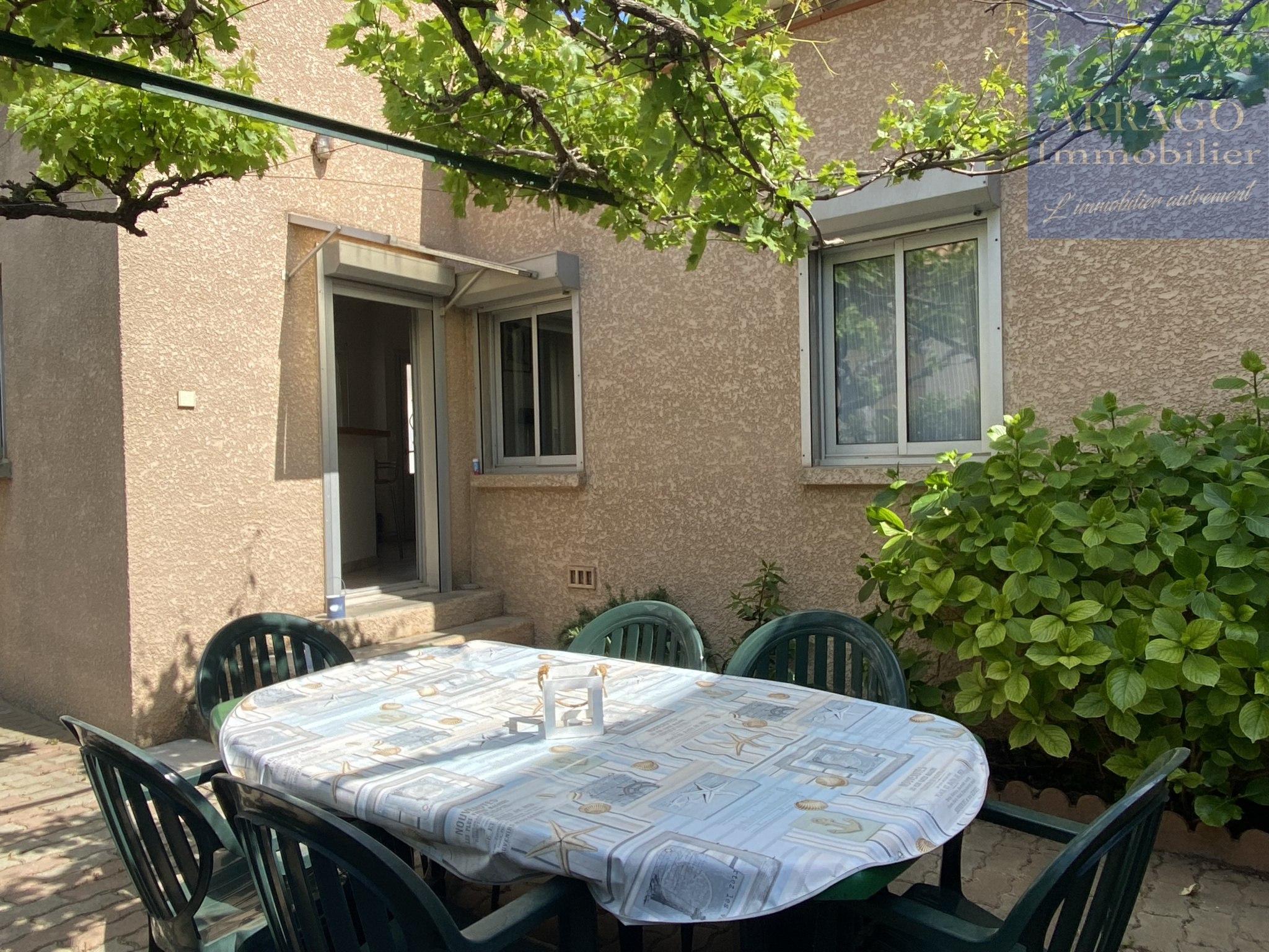 VALRAS PLAGE, secteur CENTRE-VILLE, maison de 90 m² composée d'un grand séjour avec cuisine équipée ouverte, 4 chambres et 2 salles d'eau avec wc puis une grande terrasse d'environ 40 m² avec barbecue.
