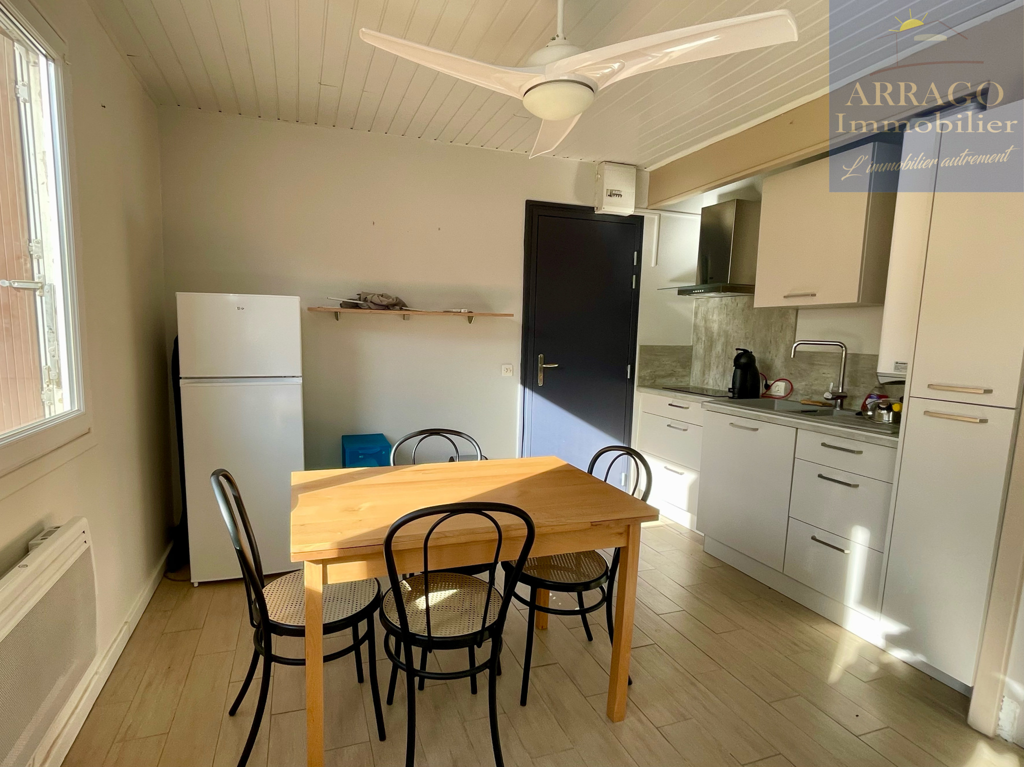 VALRAS PLAGE, secteur stade, maison "La Casa" d'environ 100 m² sur un terrain de 180 m² composée d'un grand séjour avec cuisine équipée ouverte, 3 chambres dont une avec un point d'eau, une salle d'eau et un wc séparé, comporte également un garage et une place de stationnement devant le garage.