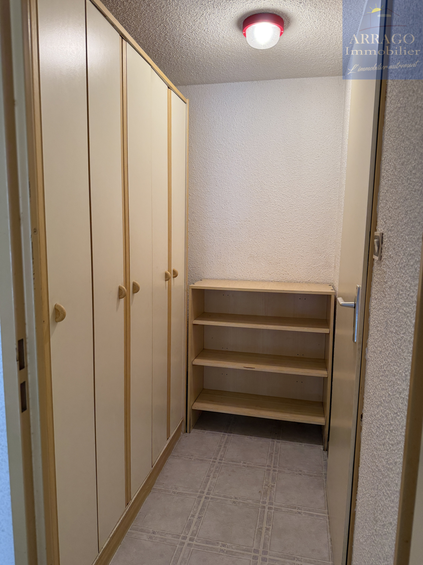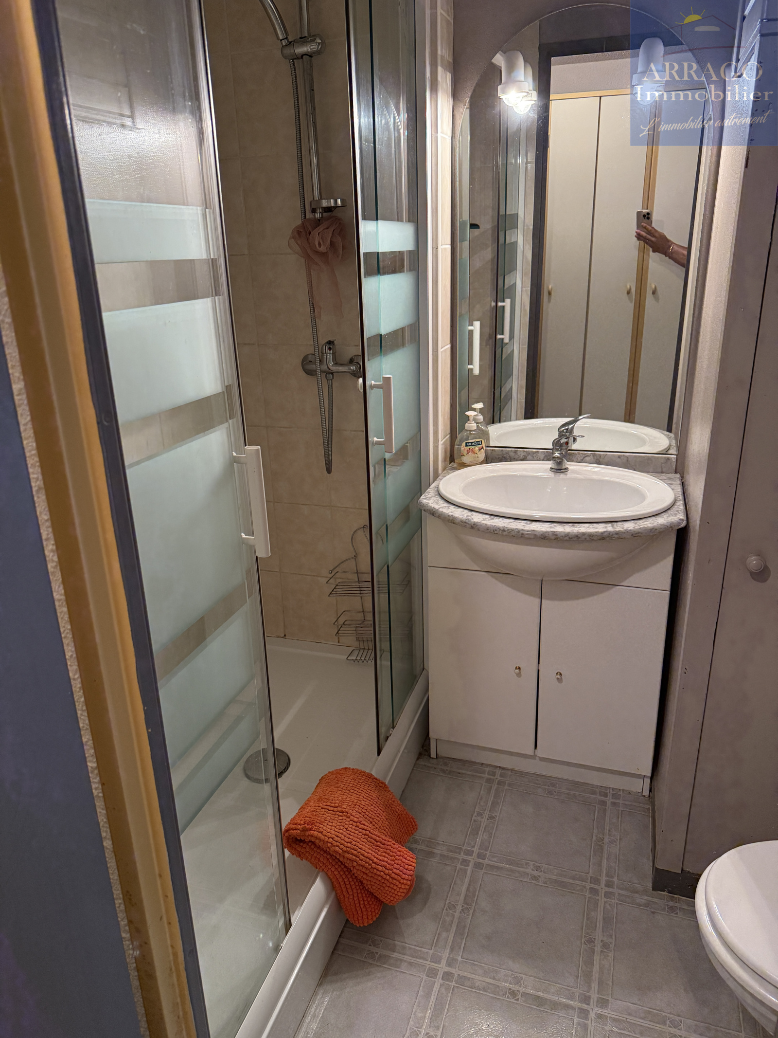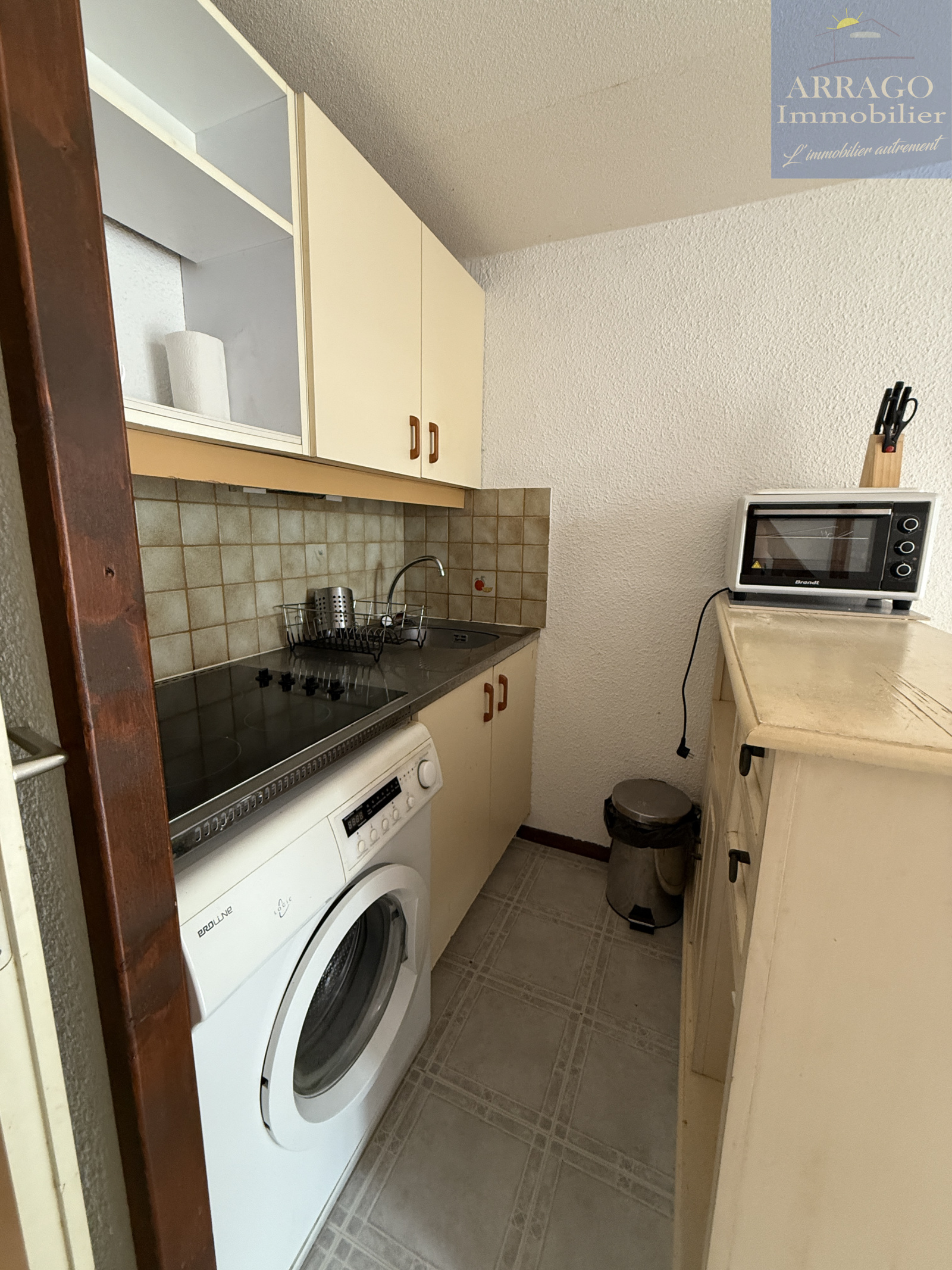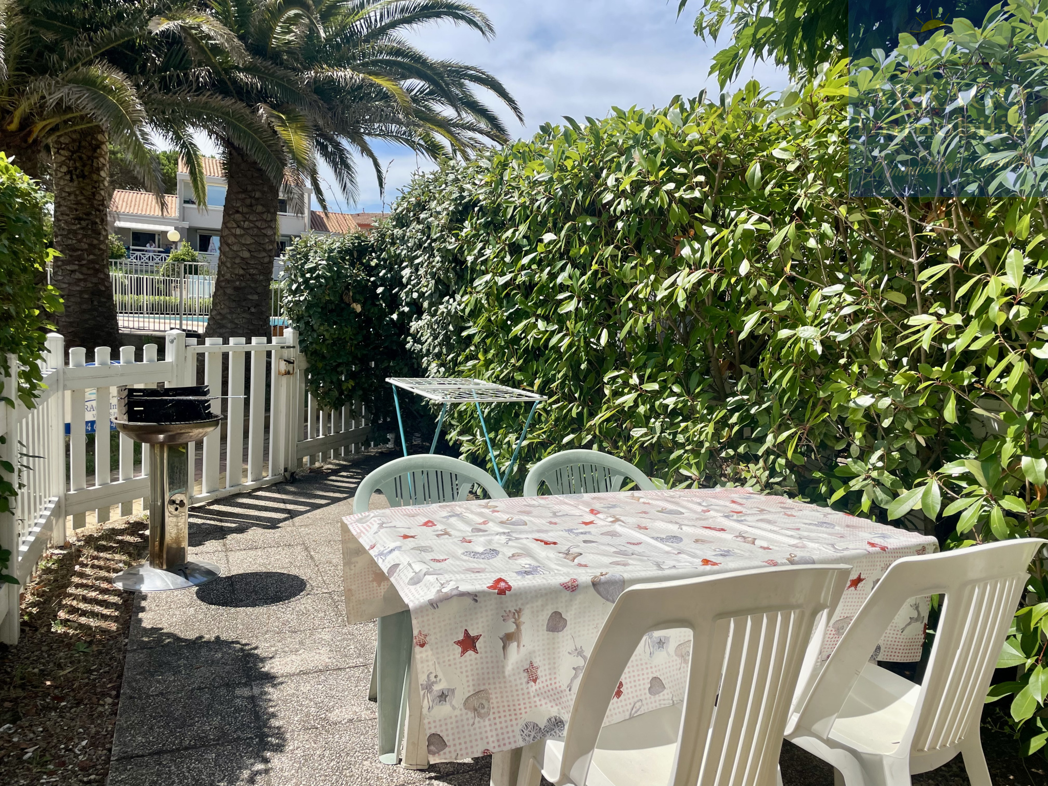 VALRAS PLAGE, dans une résidence sécurisée avec piscine collective, "LOU PORTALOU", pavillon composé d'un séjour avec kitchenette, une salle d'eau avec wc, rangements nombreux, une mezzanine avec vélux (chambre), une loggia et une terrasse avec accès direct à la piscine. Une place de parking privative.