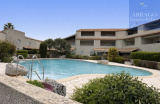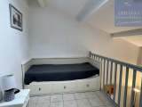 VALRAS PLAGE, dans une résidence sécurisée avec piscine collective, maison en R+1 d'environ 40m² habitables, comprenant au rez de chaussée un séjour avec cuisine équipée ainsi qu'une salle de bain avec wc et à l'étage, une mezzanine, une chambre avec vue sur la piscine et un wc séparé. 2 terrasses complètent également cette location.