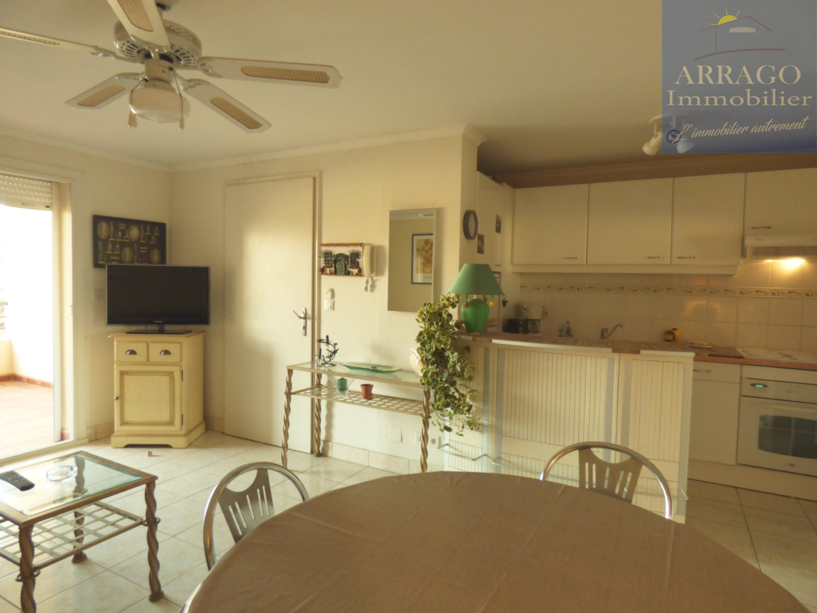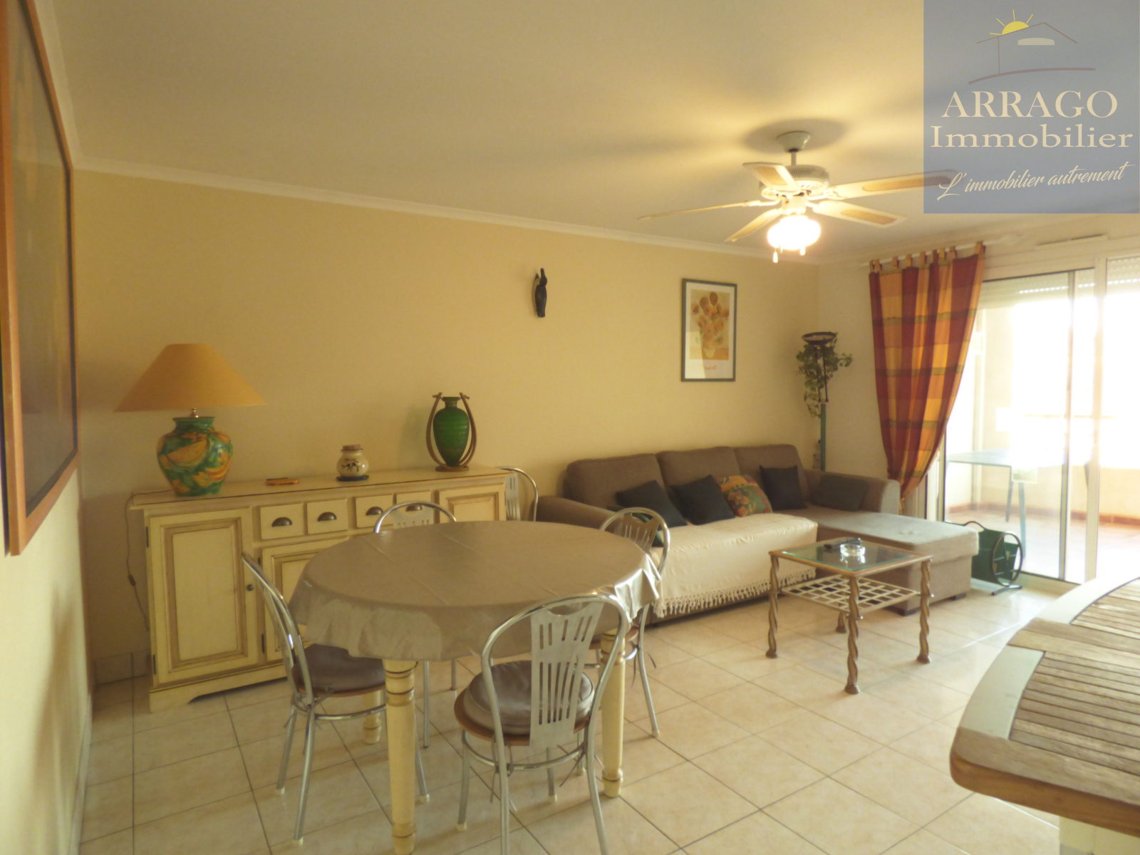 UNE EXCLU ARRAGO ! Secteur du CASINO, à 250m de la plage, superbe appartement parfaitement bien entretenu et meublé avec goût, de type 3 avec grande terrasse plein sud et apercu mer. Composé d'un large séjour avec cuisine équipée ouverte avec bar, 2 chambres, salle de bain et wc indépendant. Vue dominante grâce à sa situaton : 2ème étage et traversant. Une place de parking privé au sein de la résidence sécurisée.
