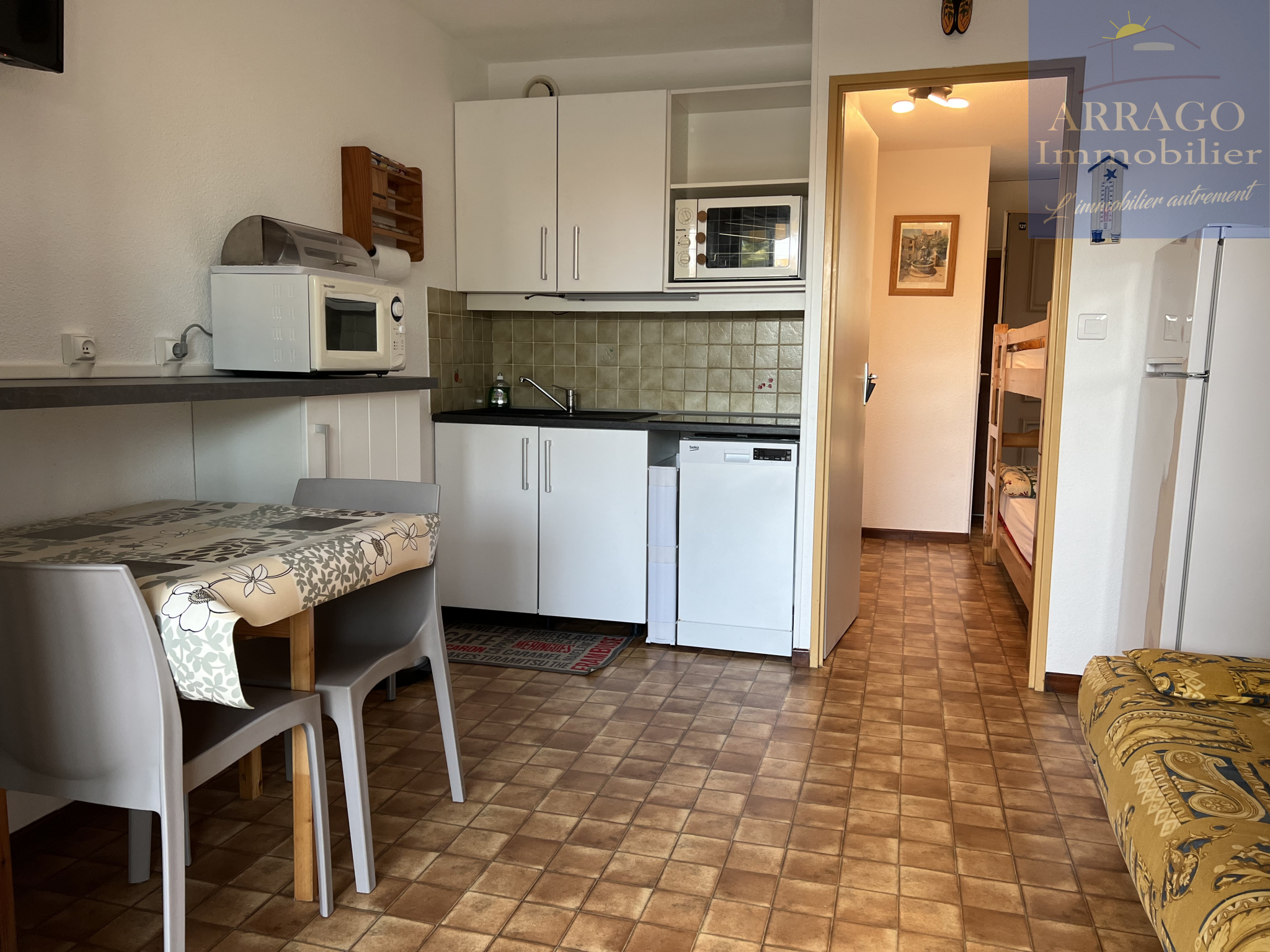 VALRAS PLAGE, joli appartement meublé en rez de chaussée d'une surface habitable de 27m², composé d'une chambre, cabine, salle d'eau avec wc ainsi qu'une agréable pièce de vie avec kitchnette et une véranda donnant accès à la terrasse exposé sud. Ce bien comporte également une place de parking privative ainsi qu'une piscine collective dans la résidence sécurisée.