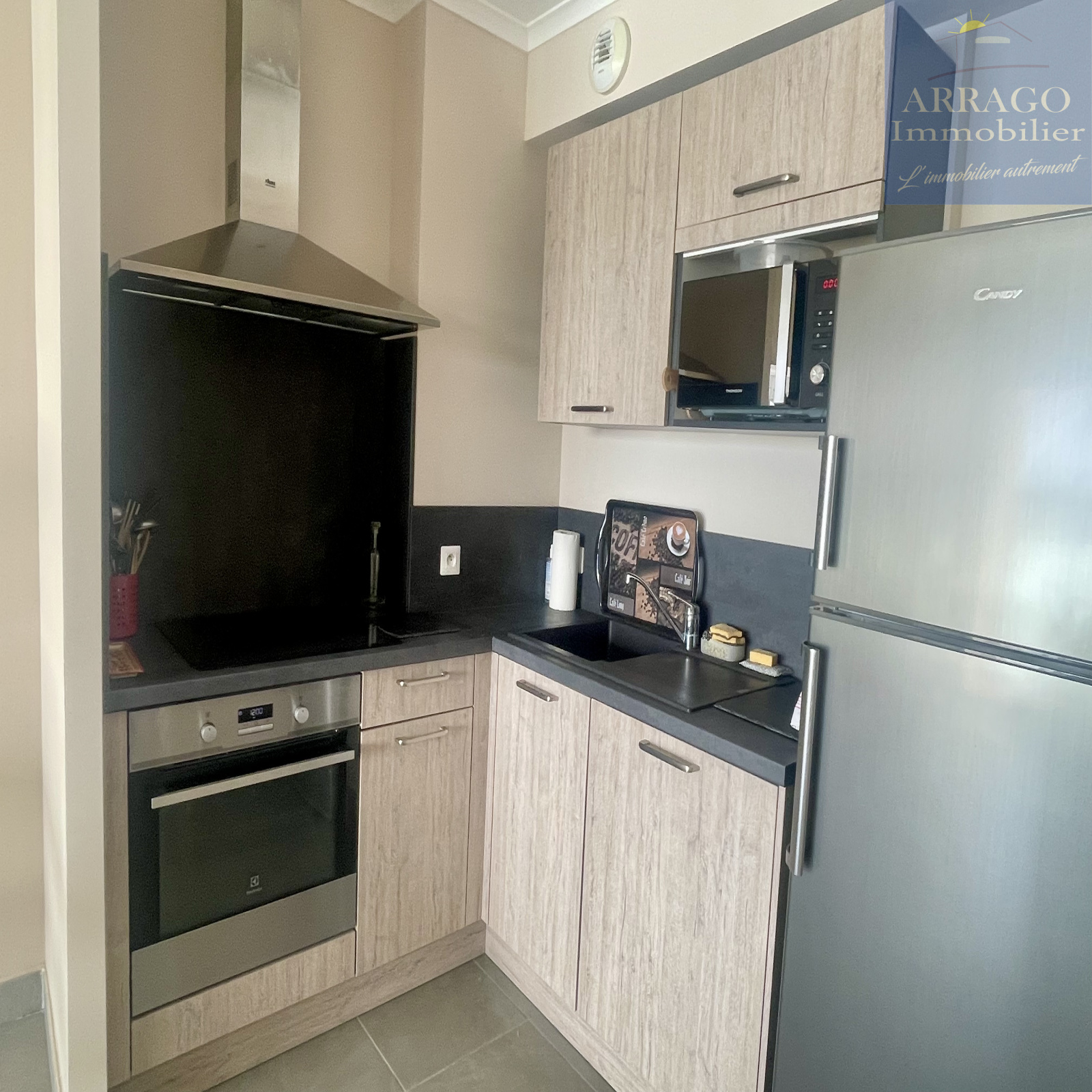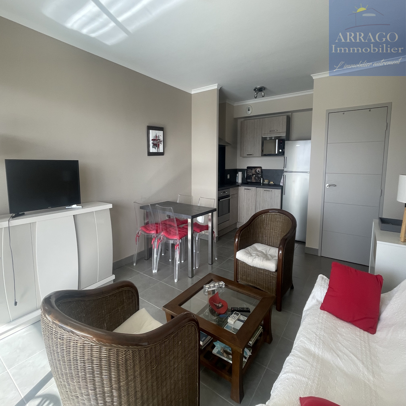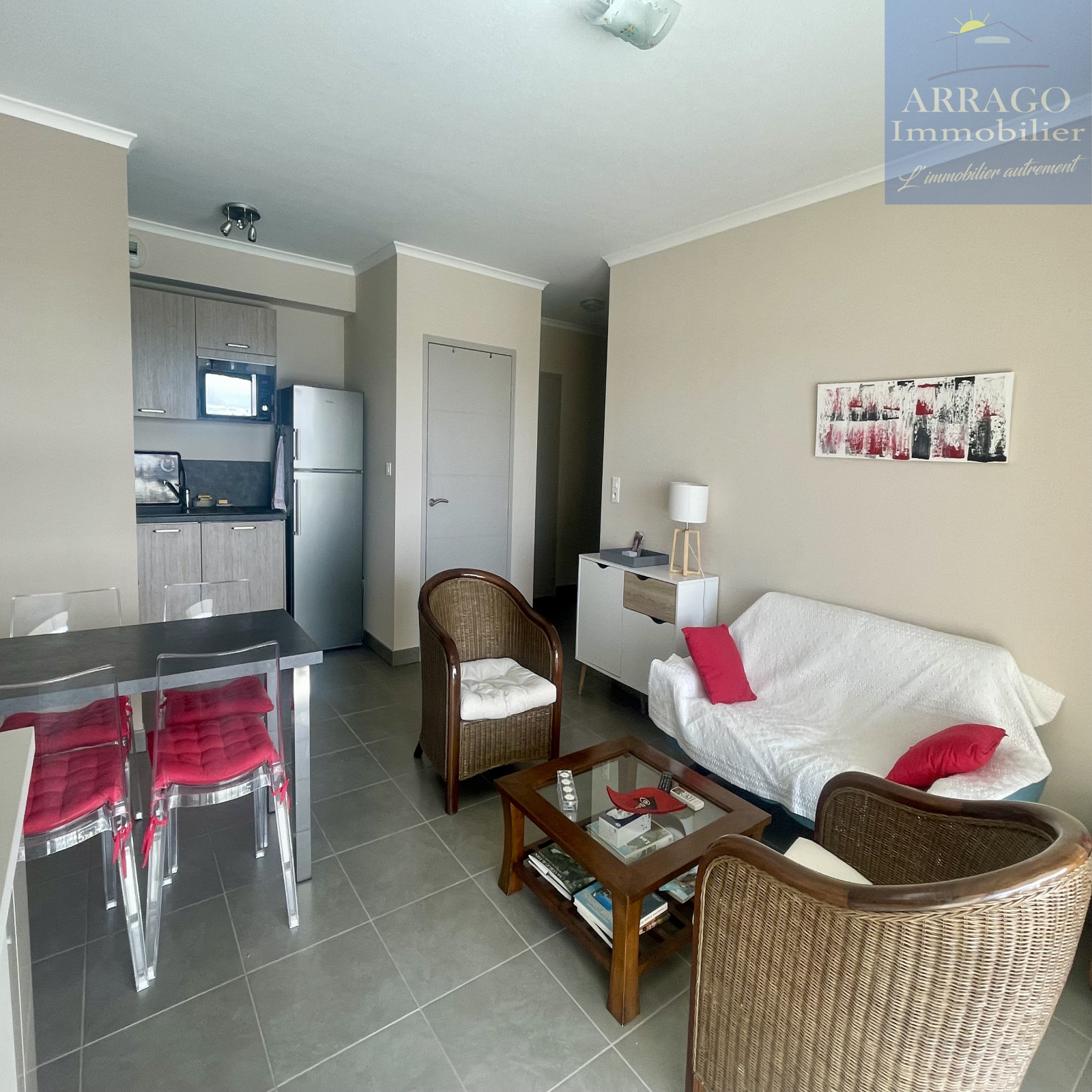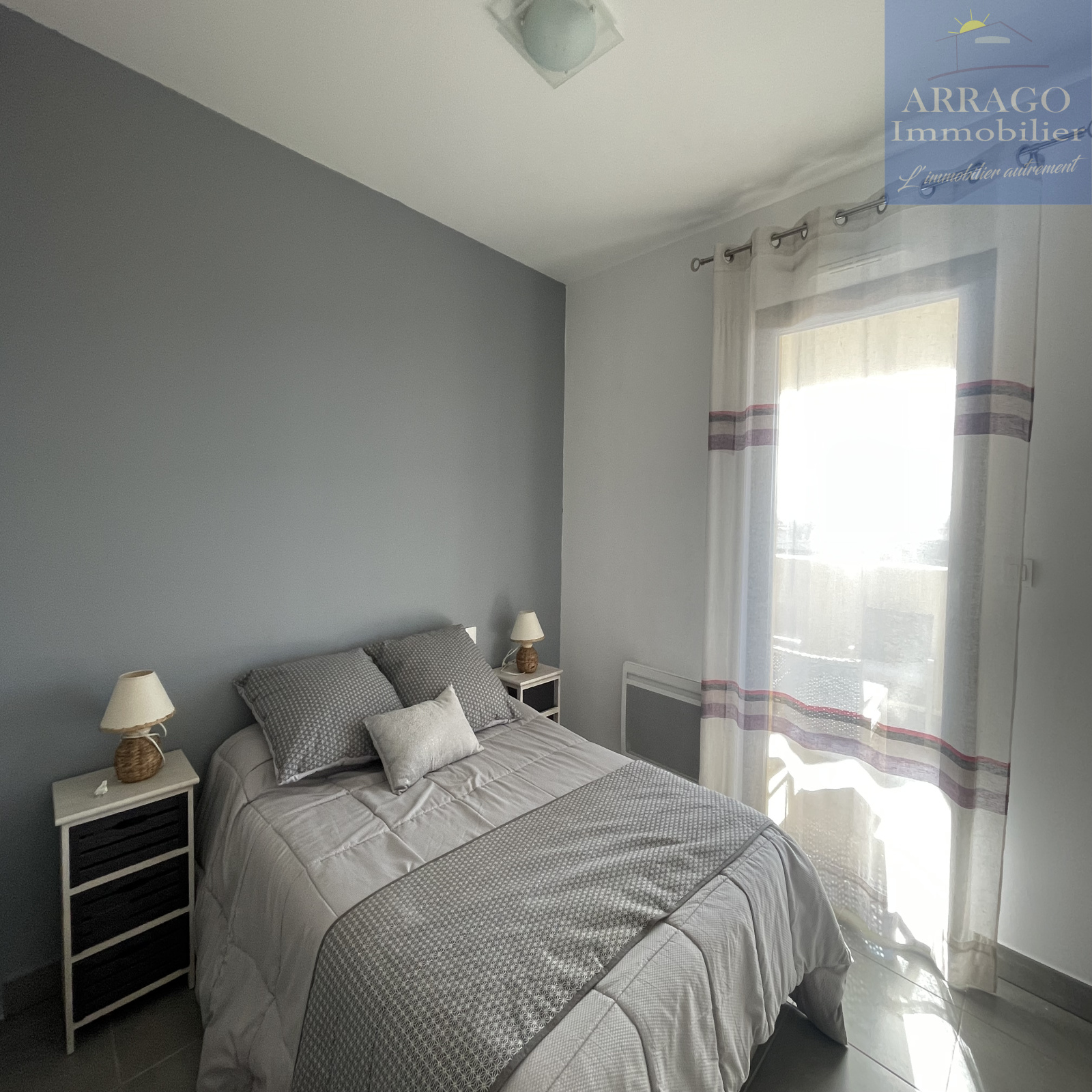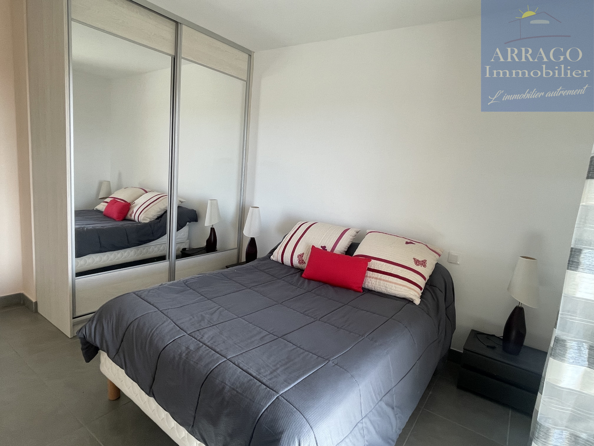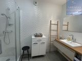 D'une surface habitable de 60m², il se compose d'un séjour avec cuisine équipée ouverte, un cellier idéal pour le stockage, 2 chambres avec placards, une salle d'eau ainsi qu'un wc séparé.