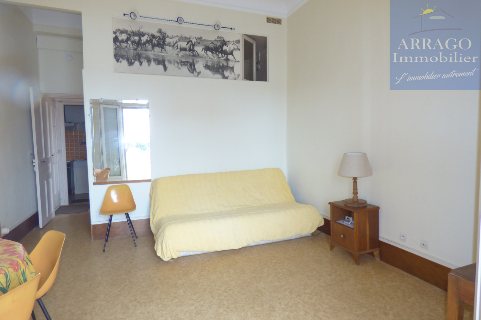 EN EXCLUSIVITE - Appartement situé en face de la plage secteur Casino, grand T2 avec travaux à prévoir. Composé d’un hall, une cuisine séparée, salle d’eau/wc, 1 chambre avec mezzanine (4 couchages), un séjour avec accès à une grande terrasse en angle de 40m² avec vue mer. Surface habitable de 36m² + possibilité de véranda pour agrandir de 15m² (soit 1 chambre en plus). Cave commune. Belle opportunité pour celui qui souhaite rendre cet appartement à son goût.