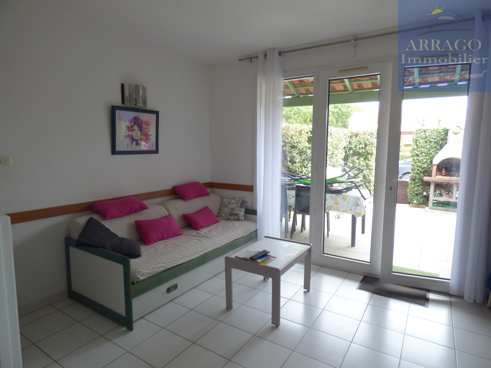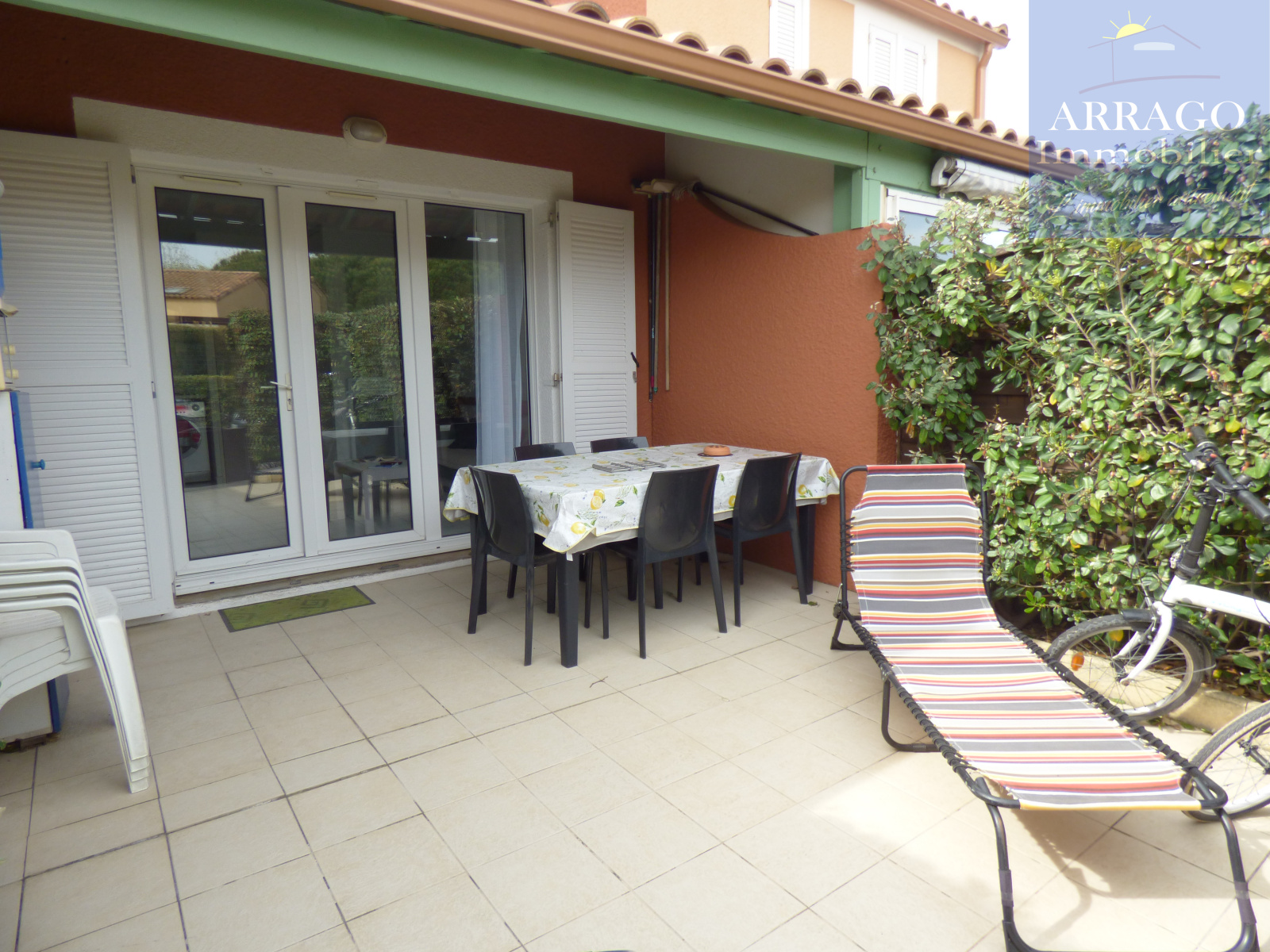 VENDRES PLAGE, résidence sécurisée avec piscine, pavillon avec errasse et 2 chambres, séjour/kitchnette, wc, salle d'eau, terrasse sans vis à vis avec barbecue. Vendu meublé! 2 parkings privés. Coup de coeur !