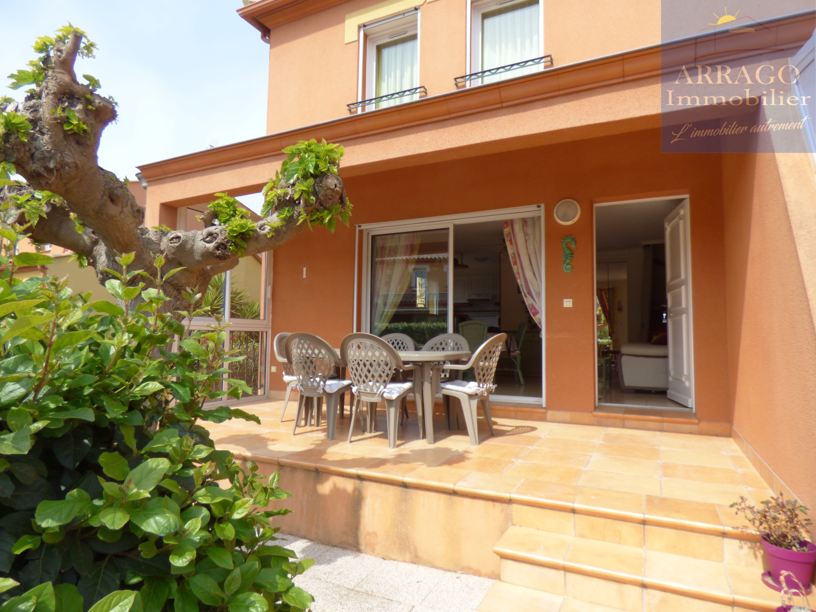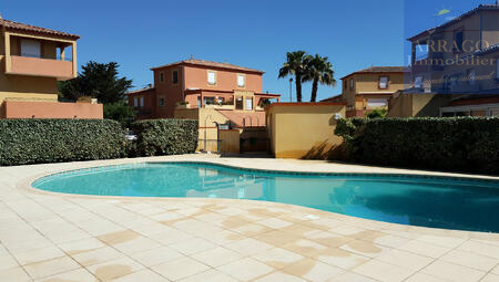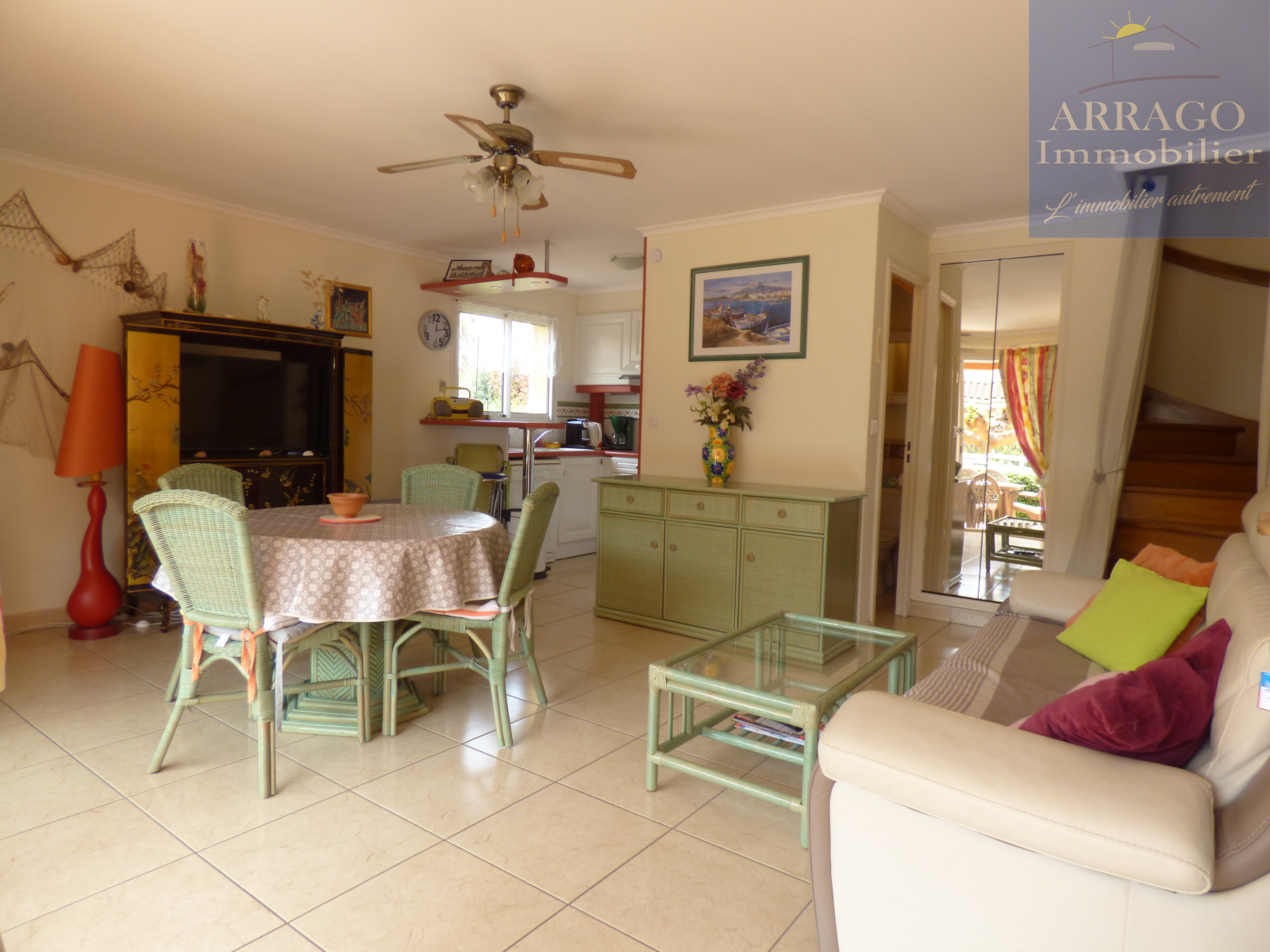 Secteur du STADE, maison 2 faces de 55m2. Séjour/cuisine équipée, placards et wc au RDC, 2 chambres, salle de bain et wc séparé à l'étage. Terrasse et cour privative agréables avec possibilité de stationner un véhicule y compris un camping car . Une place de parking sécurisée privative. Piscine collective au sein d'une jolie résidence sécurisée et arborée. A 15 minutes de la plage à pieds. Très bien entretenu. Bien vendu meublé. Idéal pour un pied à terre à la mer !