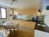 D'une surface d'environ 90m² habitables, elle se compose d'un séjour lumineux, une cuisine équipée, de deux chambres dont une avec placard et une seconde avec accès direct au jardin à l'arrière de la maison, une salle de bain, un wc séparé ainsi qu'un cellier/buanderie.